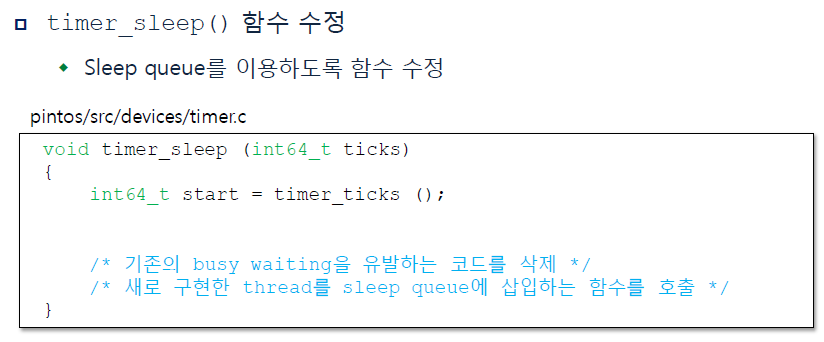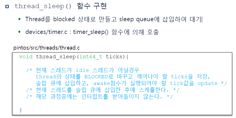 timer_sleep()을 수정한다. 기존 함수는 다음과 같다.