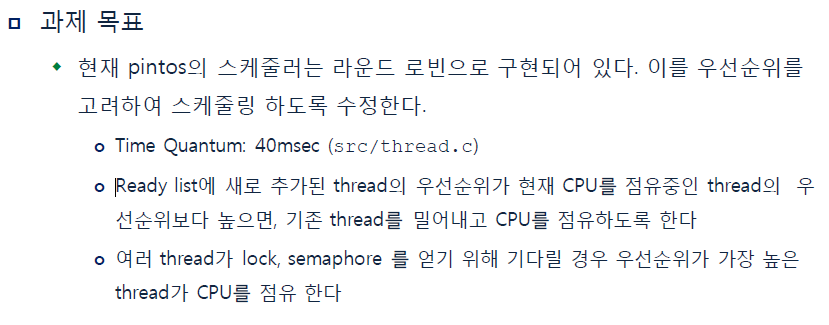 생각해보니 이미 thread 구조체에 priority가 있고, thread_create()에도 priority의 인자가 있다. 그러면 priority 자체는 추가하지 않아도 될 것 같다.