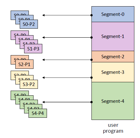 - Paging (고정 크기 분할) 과 Segmentation (논리적 분할) 을 결합