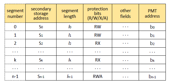 그림 1은 Segment Map Table을 나타낸 것이다. PMT에서 ([PintOS, Project3] 메모리 관리 1. Paging System (tistory.com) 참조) Segment length랑 protection bit가 추가된 것을 알 수 있다.