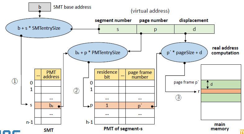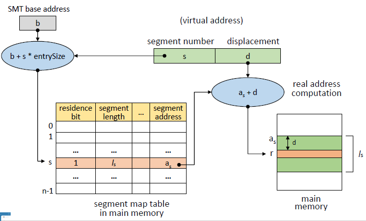 1. SMT base address b와 segment number s로 SMT로 접근한다. ( b + s * SMT entrySize )