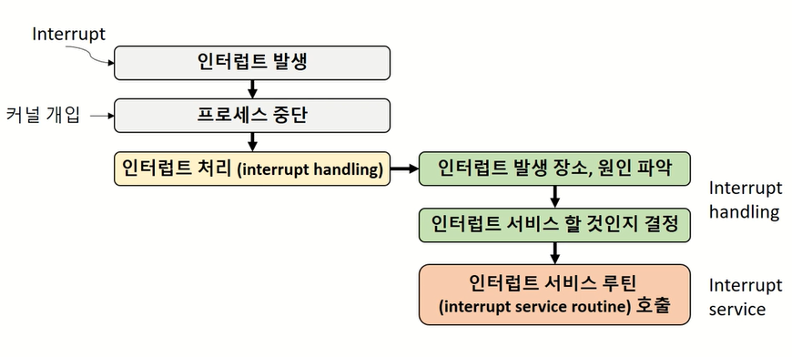 3. Interrupt handiling 실행 : 커널이 인터럽트 발생 원인을 파악함